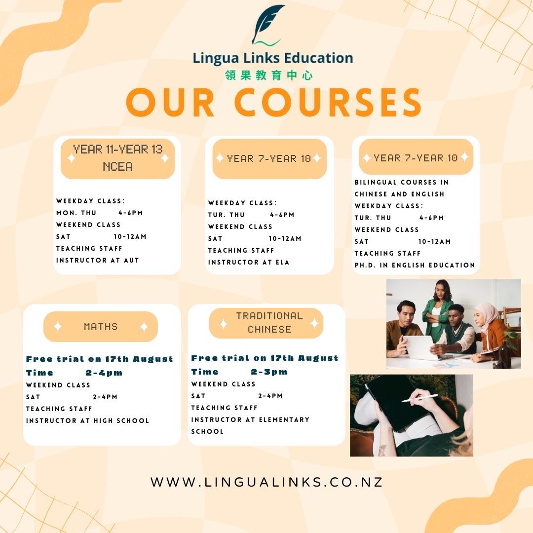 Welcome to Lingua Links Education, where you can enhance your English reading and writing skills. Our experienced and well-trained lecturers bring energy and technical expertise to every class. With ten years of experience providing comprehensive English courses, we offer flexible reading and writing courses for students from year 1 to year 13. We aim to promote active learning and inquiry-based thinking among students while encouraging parents to support their learning journey.